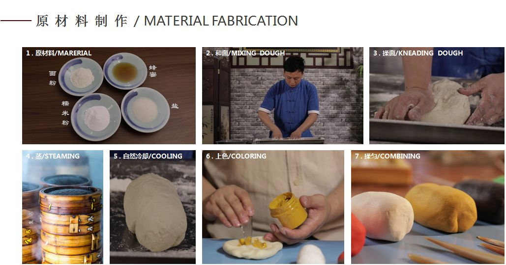 The dough figurine, one of the city-level intangible cultural heritage in Xi'an, is commonly known as Mian Hua and Li Mo, it is also one of the traditional folk arts in Xi'an. In the past, as the Chinese New Year arrives, the dough figurine craftsman would travel from town to town to present their artworks, acquiring huge popularity from the public. Nowadays, the dough figurine as an art form is valued as a precious intangible cultural heritage.
