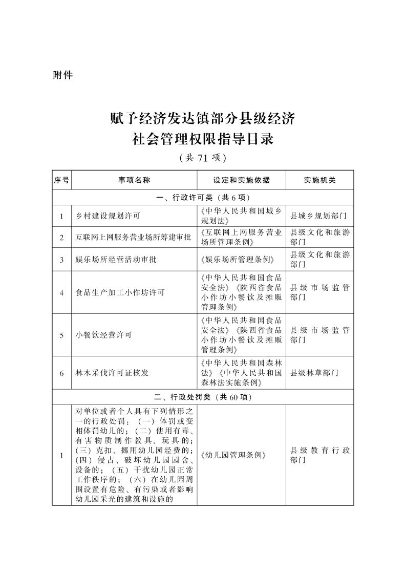 当事人对经济发达镇人民政府涉及《指导目录》所列事项的具体行政行为不服的,可依法行使行政救济权利。附件:赋予经济发达镇部分县级经济社会管理权限指导目录(共71项)